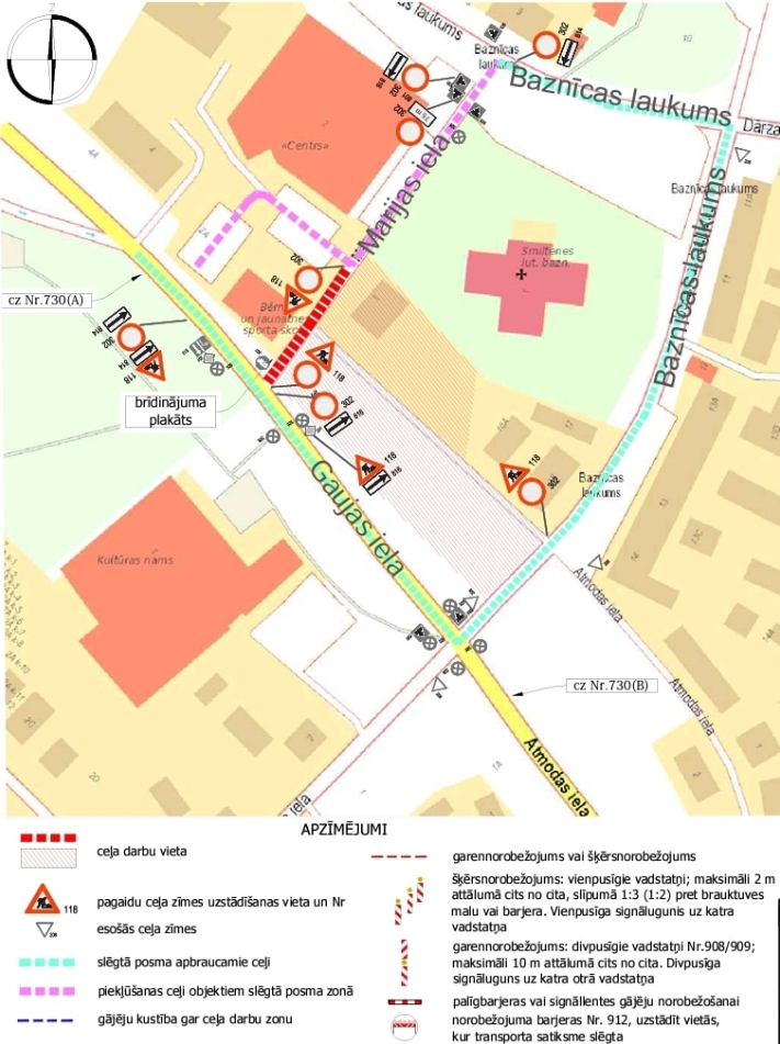- Pirmais, pēc frēzēšanas darbiem, pilnībā tiks SLĒGTS posms no Gaujas ielas līdz iebrauktuvei uz tirdzniecības veikala “Centrs” stāvlaukumu. Iebraukšana stāvlaukumā no Baznīcas laukuma puses, saskaņā ar pievienoto