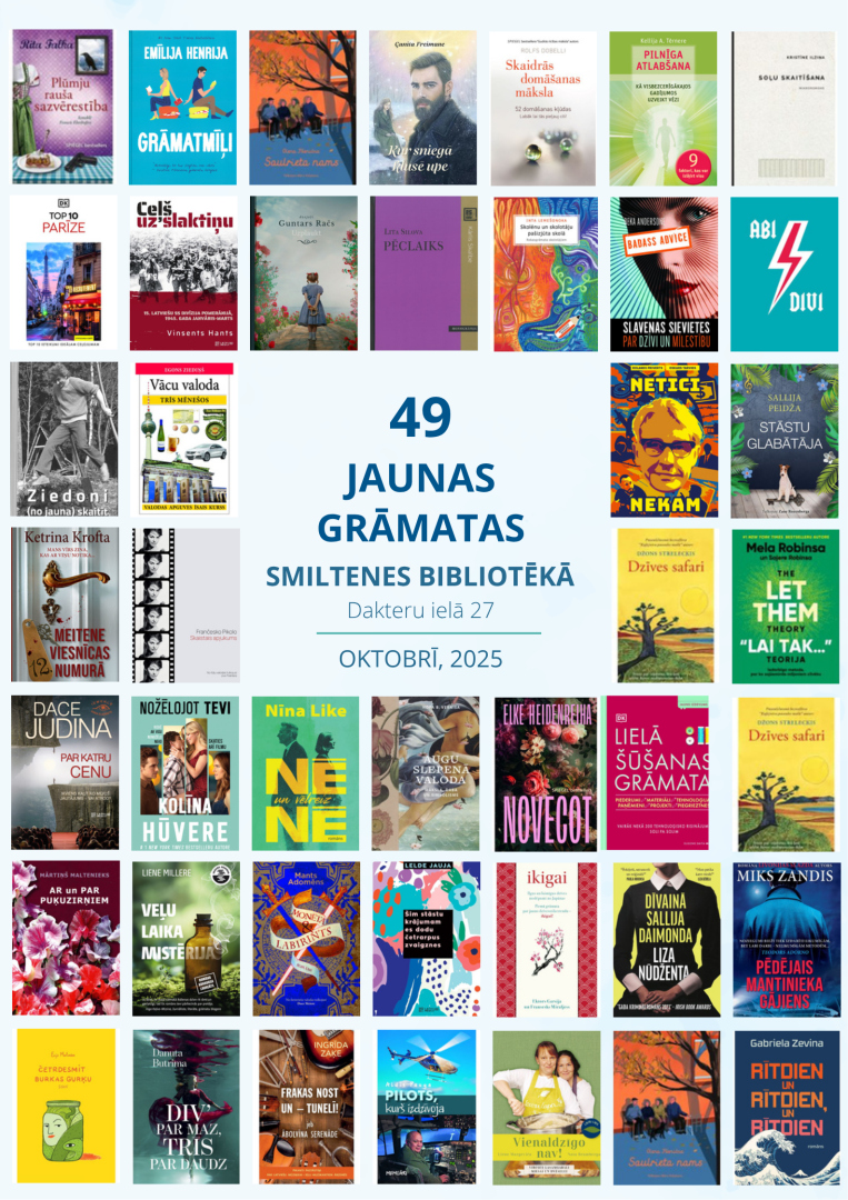 Jaunās grāmatas Smiltenes bibliotēkā Dakteru ielā 27 būs pieejamas lasītājiem no 24.oktobra.