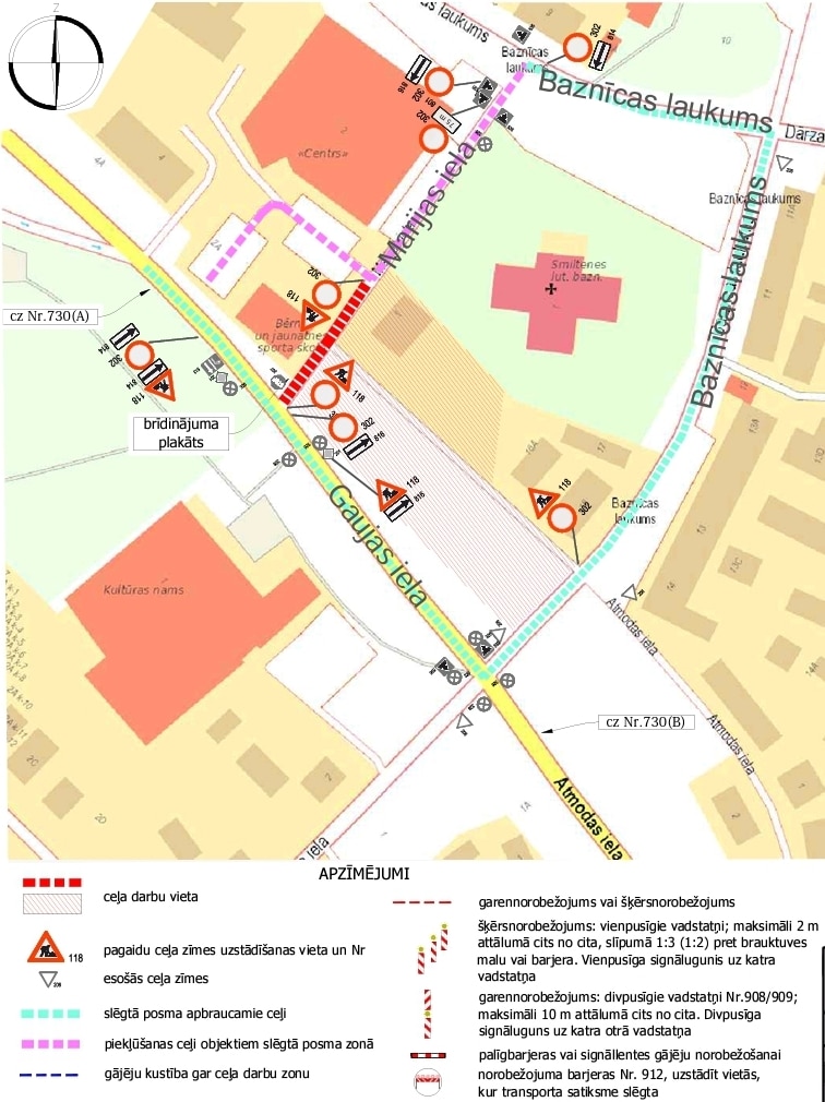 Ar 12.maiju tiks SLĒGTS posms no Gaujas ielas līdz iebrauktuvei uz tirdzniecības veikala “Centrs” stāvlaukumu, saistībā ar ēkas demontāžas darbiem Marijas ielā 1, Smiltenē. Satiksmes organizācijas shēma