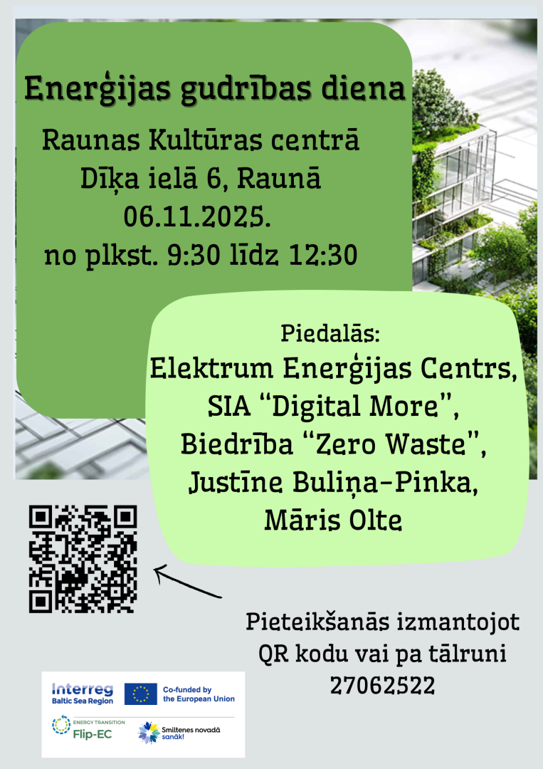 2025. gada 6. novembrī iedzīvotāji aicināti uz "Enerģijas Gudrības dienu". Pasākums notiks Raunas Kultūras centrā, Dīķa ielā 6, reģistrēšanās no pulksten 9.00. "Enerģijas Gudrības diena" tiek organizēts projekta “Flip-EC” ietvaros un tā mērķis ir veicināt publisko ēku lietotāju energoefektīvu uzvedību.
