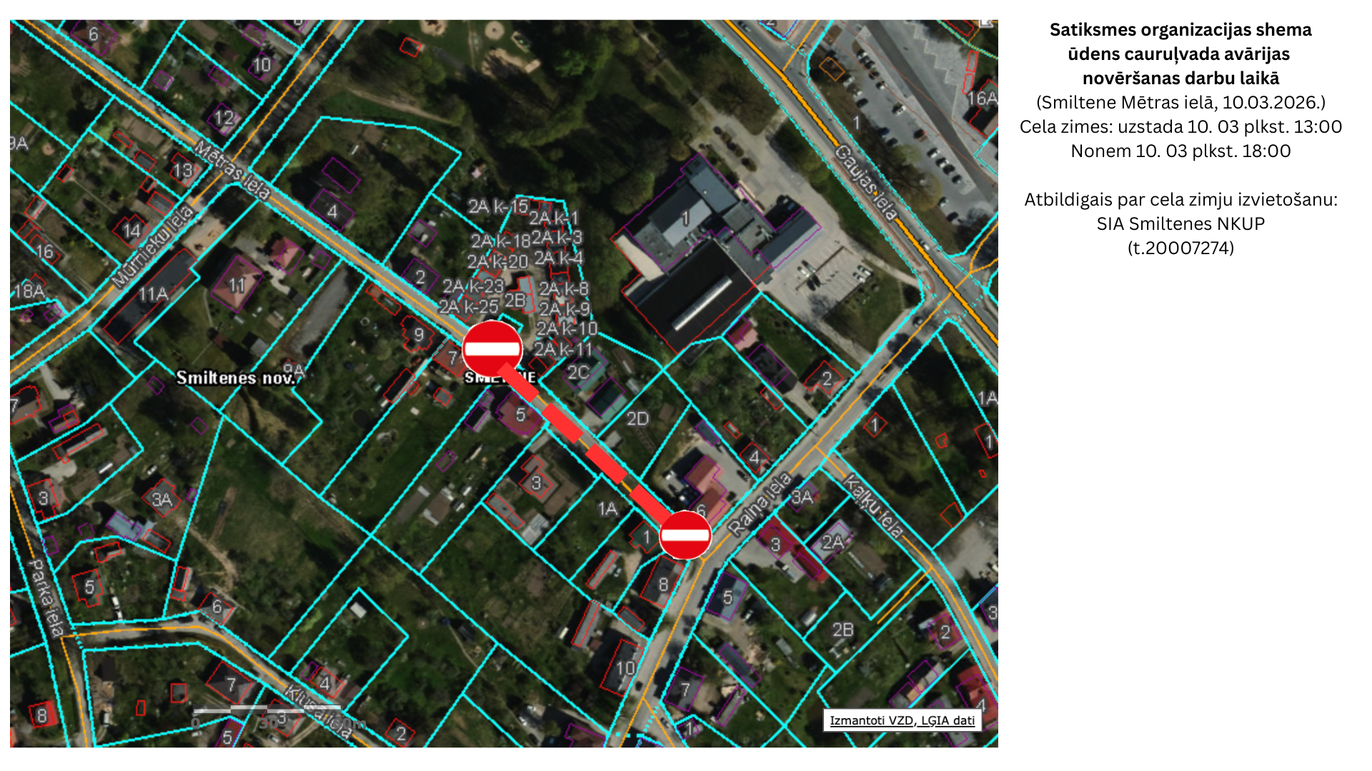 Informējam, ka sakarā ar ūdensvada avāriju 10. martā no pulksten 13.00 (plānots) Smiltenē, Mētras ielā (posmā starp Raiņu ielu un Mētras ielu 7) būs ierobežota satiksme līdz remontdarbu pabeigšanai.