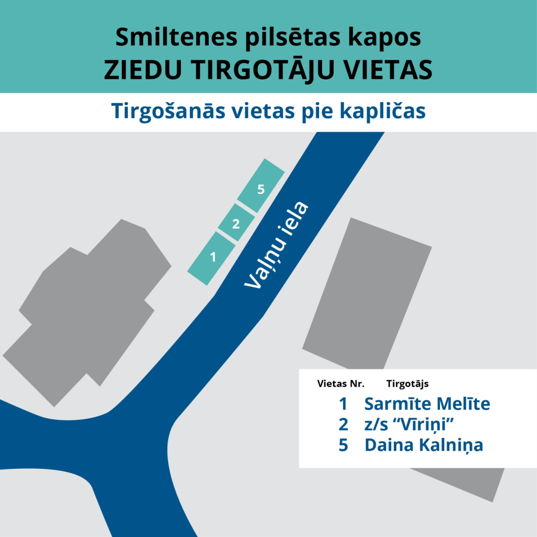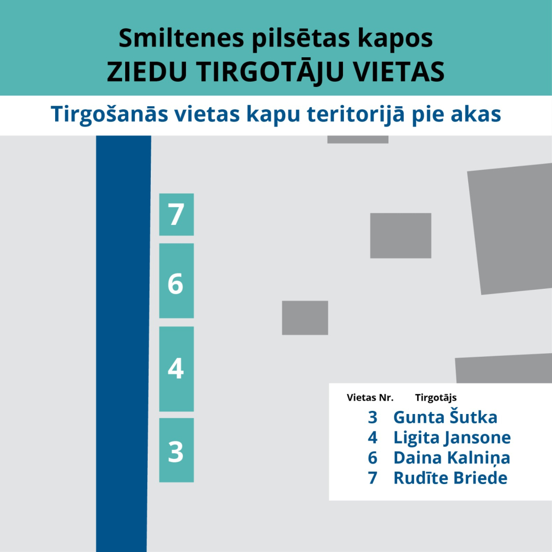 Kā jau katru gadu, svecīšu vakara laikā būs iespēja iegādāties ziedus. Aicinām iepazīties ar tirgotāju izvietojumu: