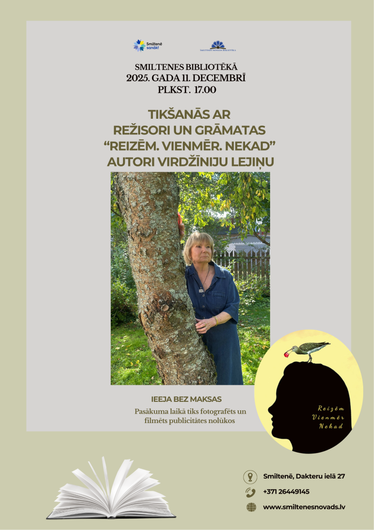 Smiltenes bibliotēka 11.decembrī plkst. 17.00 aicina uz tikšanos ar režisori un grāmatas „Reizēm. Vienmēr. Nekad" autori Virdžīniju Lejiņu.